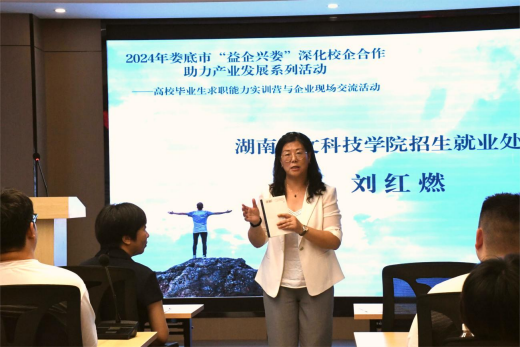 為進(jìn)一步深化校企合作,助力產(chǎn)業(yè)發(fā)展,持續(xù)推動“益企興婁 ”活動,2024年7月,婁底市人力資源和社會保障局與湖南人文科 技學(xué)院聯(lián)合開辦了“婁底市首期求職能力實訓(xùn)營”。為切實提高實訓(xùn)營學(xué)員對行業(yè)企業(yè)的認(rèn)知,讓學(xué)員親身感受婁底企業(yè)的發(fā)展?fàn)?/span>況,提高學(xué)員的就業(yè)實踐能力,2024年8月7 日,由婁底市就業(yè)服務(wù)中心、湖南人文科技學(xué)院招生就業(yè)處、婁底市企業(yè)聯(lián)合會、婁底市企業(yè)家協(xié)會聯(lián)合主辦,婁底市節(jié)能環(huán)保產(chǎn)業(yè)促進(jìn)中心等企業(yè)承辦,在婁星產(chǎn)業(yè)開發(fā)區(qū)產(chǎn)學(xué)研中心舉辦“2024年婁底市高校畢業(yè) 生求職能力實訓(xùn)營與企業(yè)現(xiàn)場交流活動”。湖南人文科技學(xué)院招 生就業(yè)處處長劉紅燃,婁底市就業(yè)服務(wù)中心城鄉(xiāng)就業(yè)服務(wù)部部長聶瑞成帶隊參加。