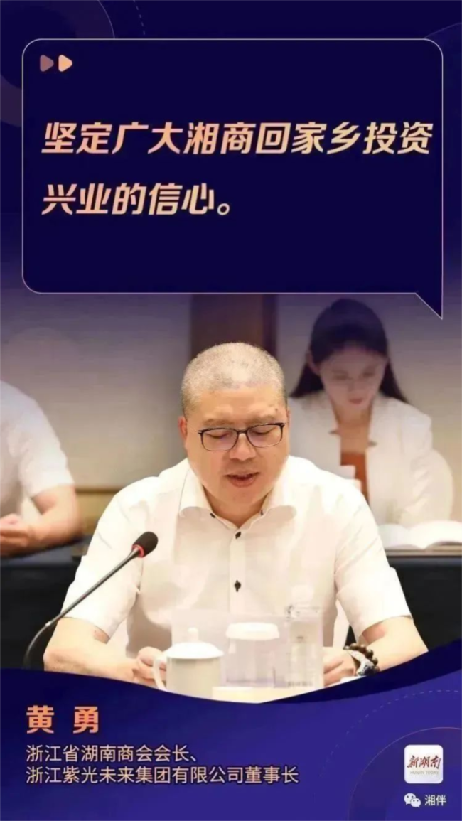 浙江省湖南商會會長、浙江紫光未來集團有限公司董事長黃勇