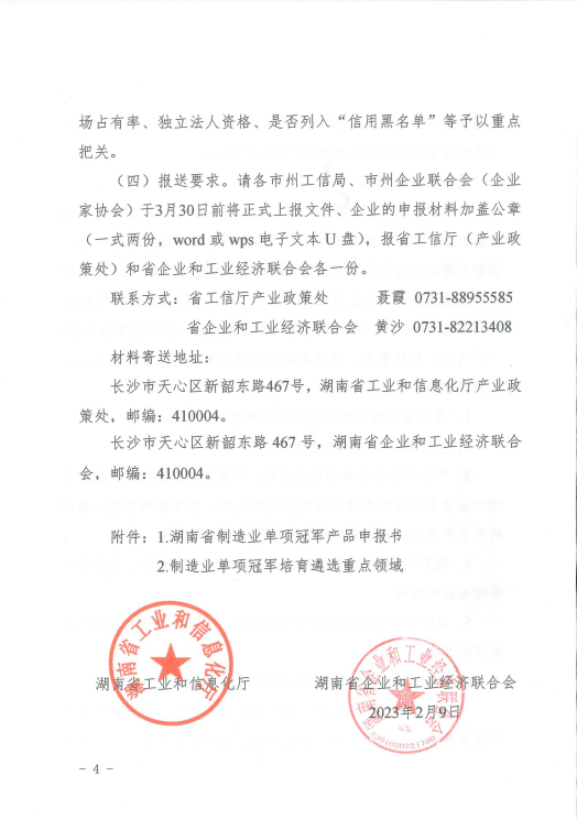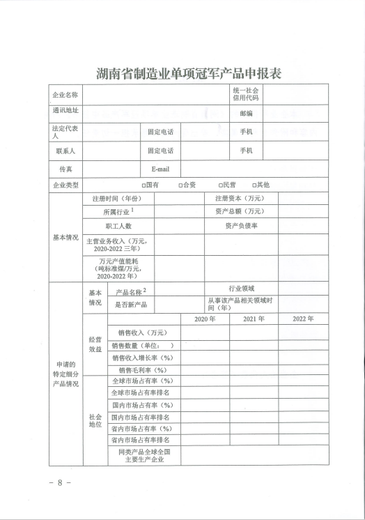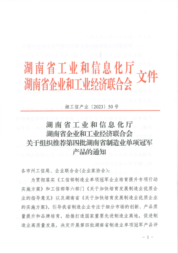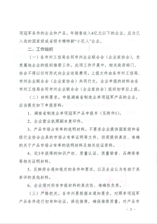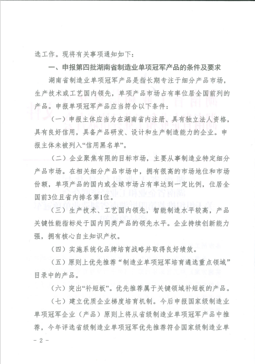 關于組織推薦第四批湖南省制造業(yè)單項冠軍產(chǎn)品的通知