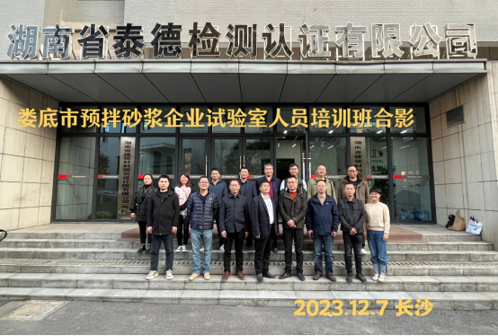 12月4-8日,婁底市散裝水泥發(fā)展中心聯(lián)合湖南省泰德檢測認證有限公司(湖南省建筑材料質量監(jiān)督檢驗授權站)組織舉辦2023年度婁底市預拌砂漿生產企業(yè)試驗室人員專題培訓班,旨在從源頭抓起、抓好預拌砂漿質量,推動預拌砂漿推廣應用工作再上新臺階。此次培訓會由黃忠衛(wèi)站長、高級工程師趙亮、陳宏俊分別就通用硅酸鹽水泥、建設用砂和預拌砂漿等內容進行了授課,并認真為培訓人員答疑解惑。試驗室工程師邢立治、陳浩就每個試驗的規(guī)范流程手把手地教大家操作。全市8家預拌砂漿企業(yè)試驗室主任以及試驗員12人參加。